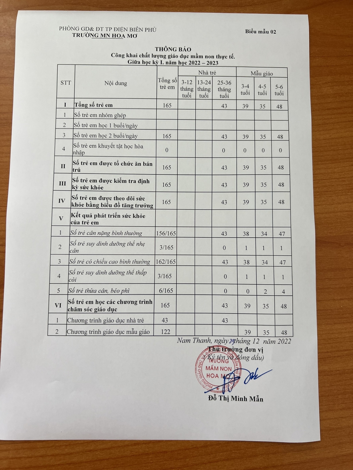CÔNG KHAI CHẤT LƯỢNG GIÁO DỤC GIỮA NĂM. NĂM HỌC 2022-2023